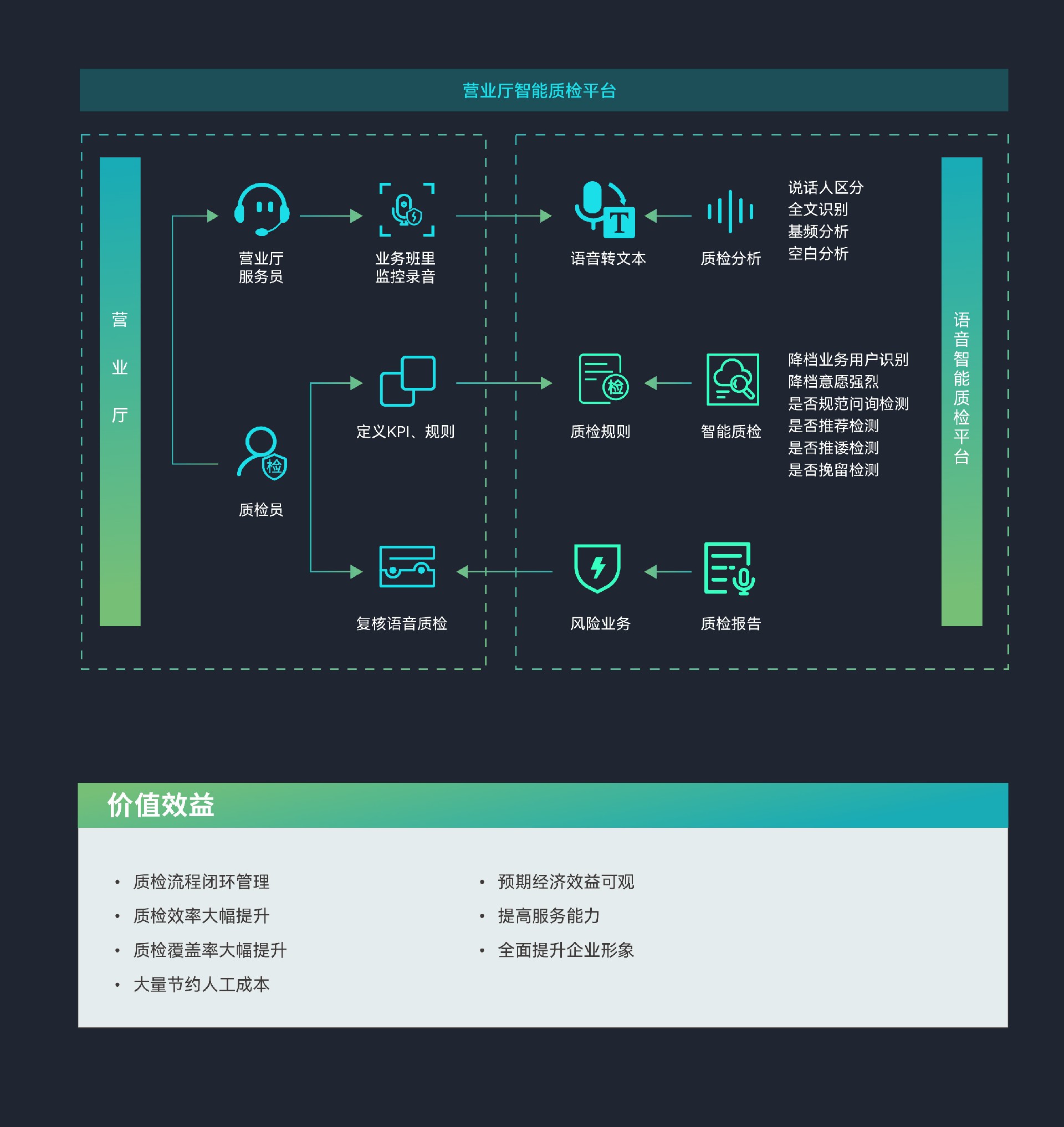 降低运营成本,提高经济效益:营业厅智能质检解决方案的引入,使得传统的人工质检方式得以优化。通过自动化和智能化的质检流程,企业可以大幅减少人力投入和时间成本,从而降低运营成本。同时,智能质检还能帮助企业更好地管理客户资源和优化服务流程,进一步提高经济效益。